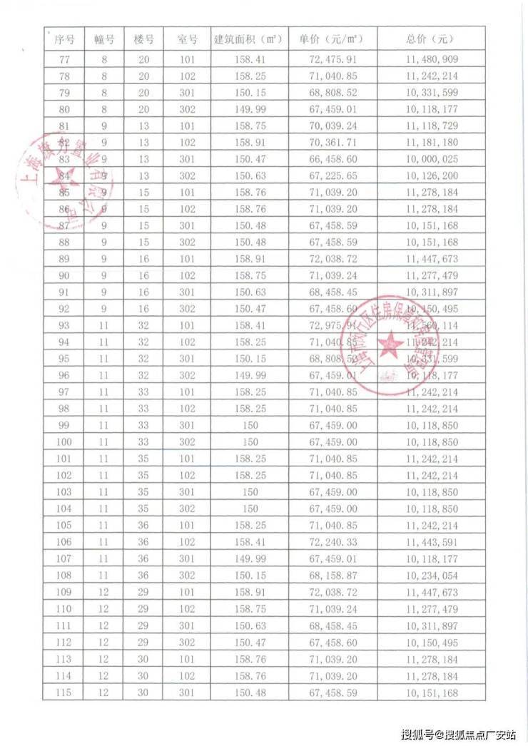 崇明某触发积分项目部分一房一价表