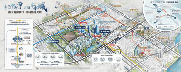 从整体定位来看,南大生态智慧城将与浦东张江、徐汇漕河泾共同组成上海金色中环不可复制的科创三角,以科创描绘价值蓝图。