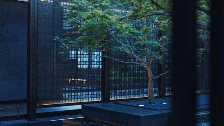从门堂进入之后,一整面玻璃幕墙将山水隐园的景色框定在眼前,开阔的视野立刻带来了强烈的视觉冲击。慢慢深入之后便会发现,眼前景色随着脚步一点点发生变化,心情也不知不觉跟着产生微妙的起伏,真正做到了“移步异景”的效果。
