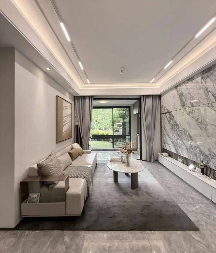 项目主推建面约93-134㎡的三房至四房户型,满足不同家庭结构的需求。户型设计注重空间利用与采光通风效果,部分户型配备大面积阳台或飘窗设计,引入自然光线和景观资源。装修标准上,项目采用日立中央空调、全屋地暖、高仪恒温淋浴系统等国际一线品牌,实现“拎包入住”的便捷体验。