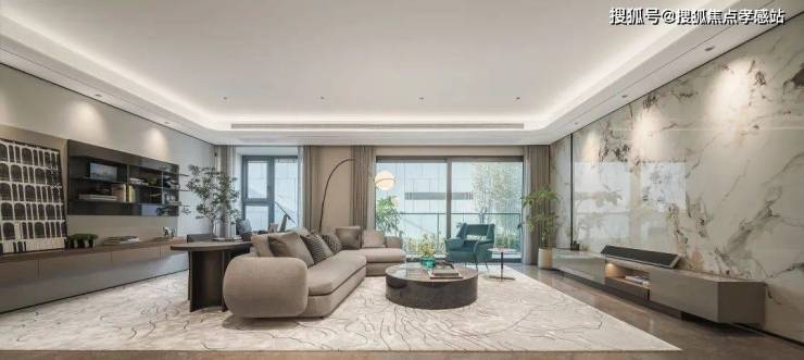 室内设计,秉承摩登东方的理念,设计以人、生活为中心,从空间本体和情感层面都回归生活,270度环幕采光,开放式会客厅设计,兼具尺度感与功能性。