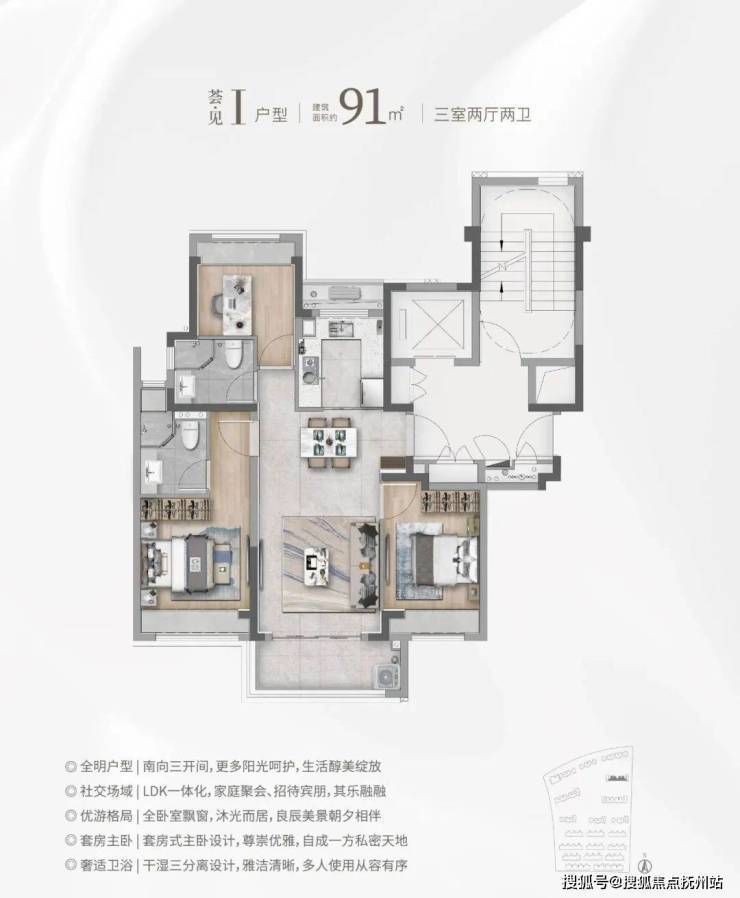 同样是3房2卫的配置,功能性与舒适度兼具。