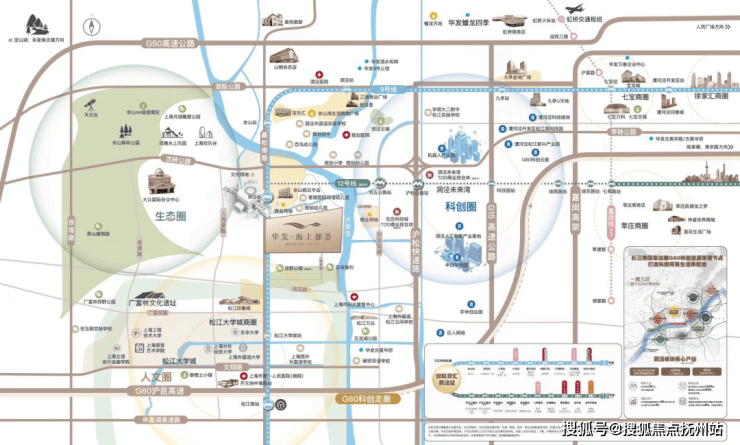 项目西侧嘉松公路,向北可到达佘山、欢乐谷、山姆会员店、青浦奥莱等,向南可到达松江第一人民医院、松江区政府、松江大学城等。·项目北侧沈砖公路会设置上下匝道口,未来可快速直达虹桥机场及上海市中心。·从项目出发,可快捷转到G50、G60高速,规划中的沪松快速路,北接漕宝路—嘉闵高架路立交,南至申嘉湖高速公路(S32),自驾出行,畅达无阻。