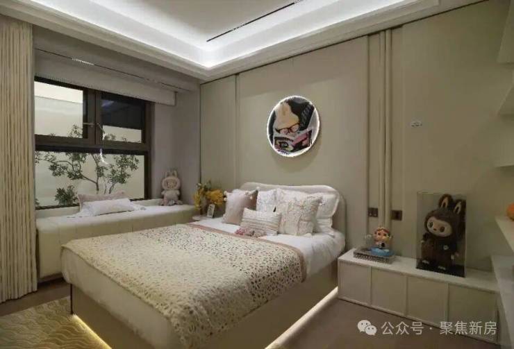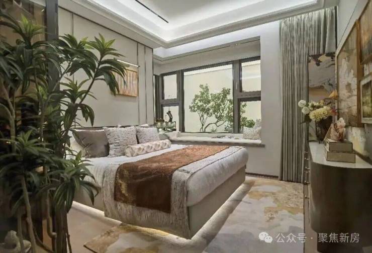 主卧套房设计,带270°转角飘窗+卫生间,拥有超棒的采光及视野,让业主有更好的私密性和生活舒适度。