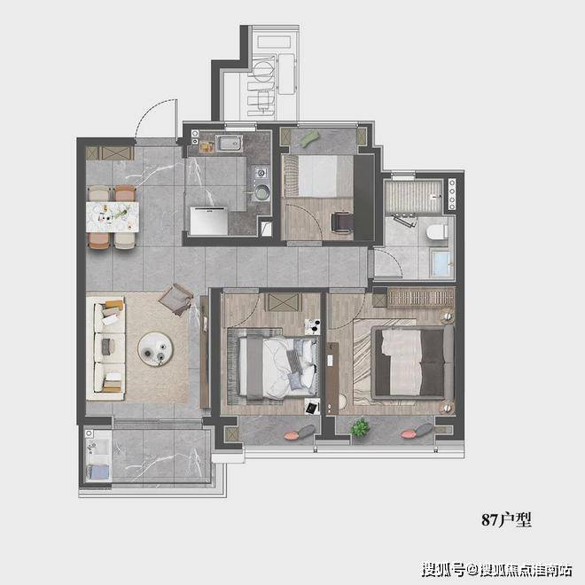 该户型贴合当代人居生活习惯,既适合三口之家小太阳家庭,也可以是三代同堂,每个人都能拥有独立空间.