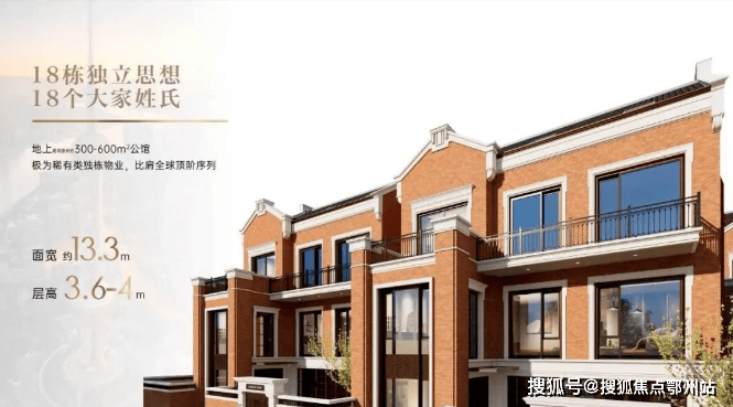 地上建筑面积约300-600㎡公馆,面宽约13.3m ,层高3.6-4m。
