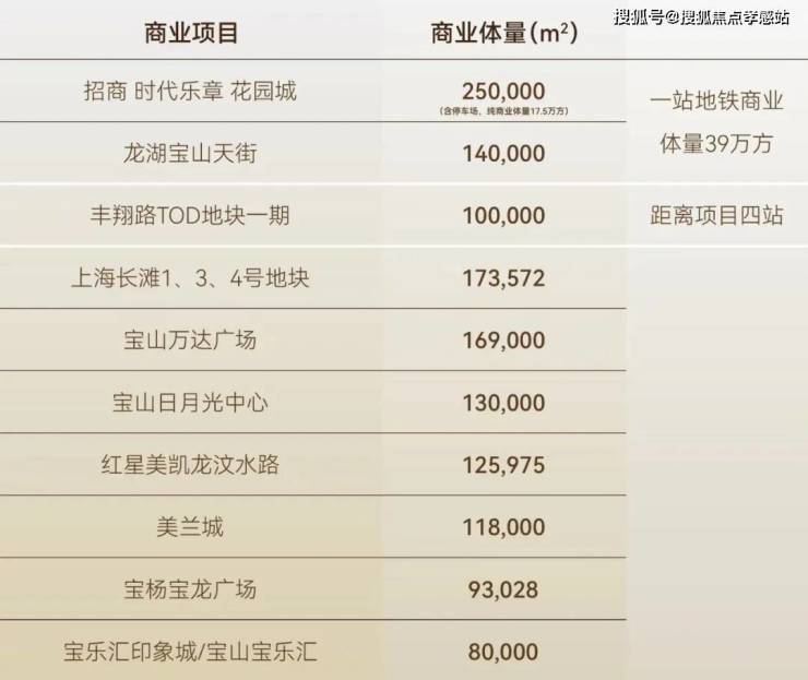 再加上刘行站约14万方(纯商业)龙湖宝山天街(已运营)、南大路站约32.2万方(全部体量)的TOD项目(规划中)。