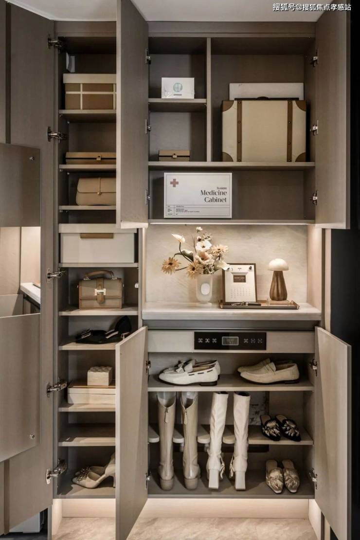 『招商时代乐章』售楼处营销中心☎☎:400-8787-740👈入户玄关处,打造石质玄关壁龛,兼具实用与美学。同时入户鞋柜标配鞋柜精灵,区分不同的功能区,短鞋/长靴皆有属于自己的空间。