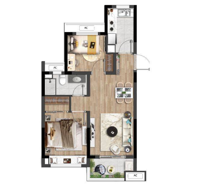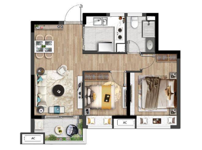 建面约74㎡两室两厅一卫