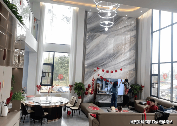 如今房子入伙,地面的红地毯,墙面贴的红色吉祥语和图案,还有气球和红丝带,外墙挂着红灯笼和挥春等等,无论是外观还是室内,房子都充满着喜庆的氛围。