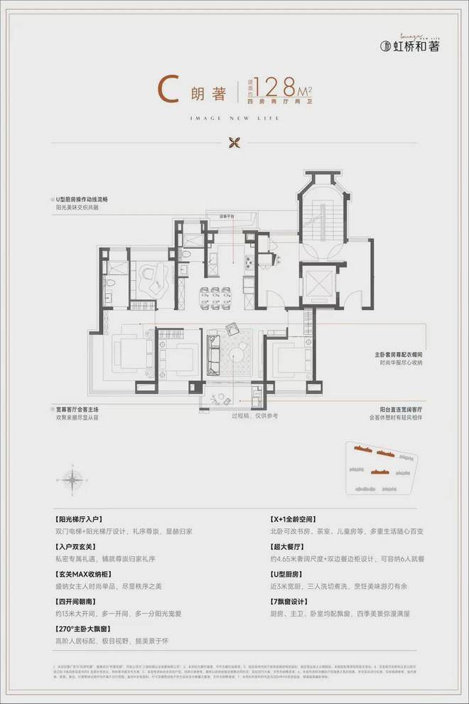 在产品打造上,保利虹桥和著更是不遗余力,展示了大虹桥很难见到的大尺度和高使用率。以首开建面约94/104/128㎡三种户型为例, 每一户都享受全明独立电梯厅,类一梯一户的居住体验!这么做相当于将室内玄关外置,大大提升居住隐私性的同时, 无形中还增加了使用面积,要知道以往只有豪宅才有这样的配置,但在保利虹桥和著却能轻松享受。