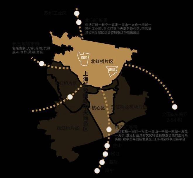 上虹桥依托东西两个片区(西居东产,共计约167公顷),遵循“以人为本、产城融合、多元包容、活力共享”的理念,整体打造创新经济集聚区、中央商务配套区和高品质国际化社区。