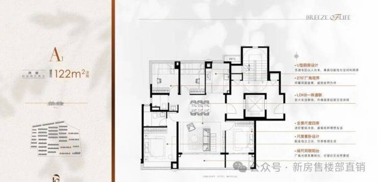 建面约122m²4房2厅2卫墅境洋房,类1梯1户设计,精装交付,南北通透。
