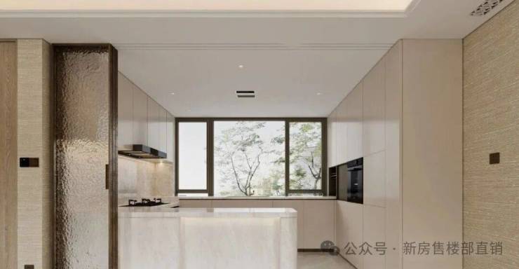 厨房整体橱柜、吸油烟机、灶具、洗碗机、多功能集成一体水槽、凉霸等都是交付标准。