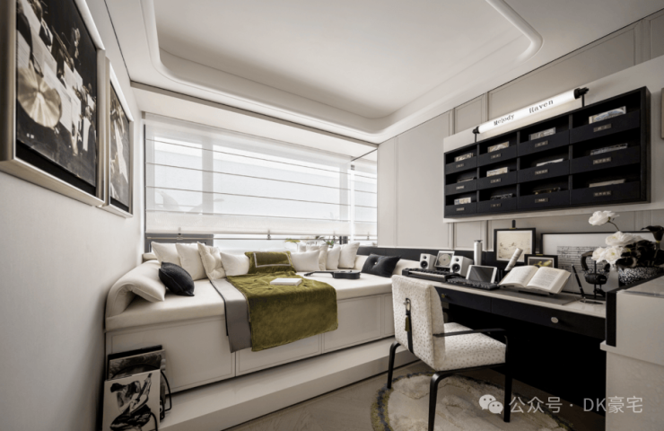 南向卧室的设计更是点睛之笔,通过可开可合的移门,与客厅上演空间魔法,实现卧室、开放式书房、客厅延伸区的三重空间形态。