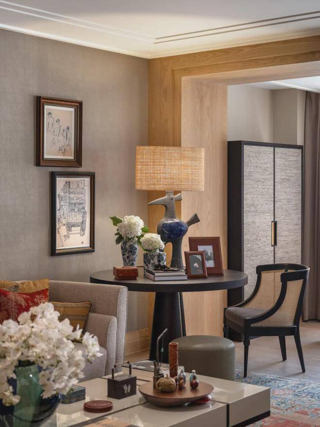 设计师于此放置了一张来自20世纪30年代的Art Deco扶手椅,并通过法国品牌Métaphores的提花面料,重构椅面的色彩与质感,顺应着上海滩的复古风潮,让古典家具以崭新的容貌重回生活。☑️☑️天潼里售楼处电话:400-8787-740☑️☑️