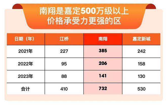 500万以上二手房,南翔成交套数远高于江桥、嘉定新城,说明南翔高端购买力更足,500万级买在南翔更好!