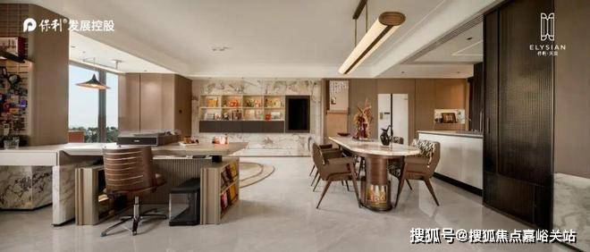 1、利用半开放式厨房,水槽向餐厅转向,提高空间互动性。不仅让视觉延伸至客厅的每一寸角落,更让你在做烹饪时,也能照顾到客厅玩耍的孩子。