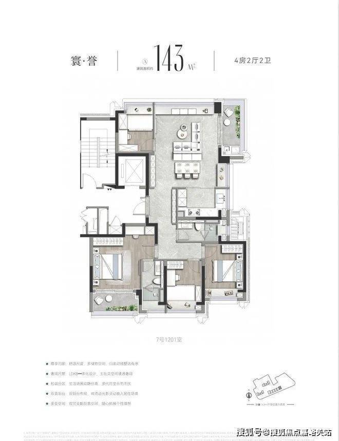 作为上海首批“好房子”新规落地范本「誉静安」未止步于单一标准的复刻,而是深度贴合上海高端家庭需求,开创性打造3.5 代宅,其约143㎡宽奢四房堪称“空间教科书”——