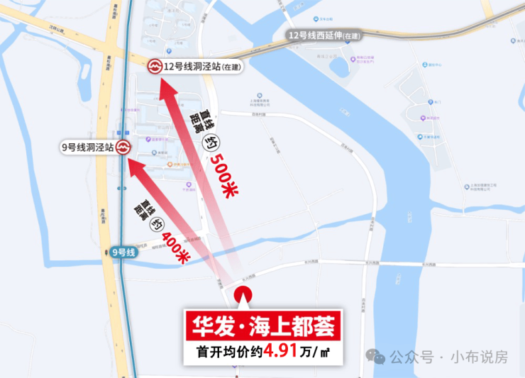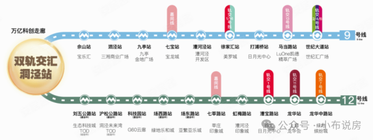 项目直线距离9号线洞泾站约400米,直线距离12号线洞泾站(西延伸线在建中)约500米。