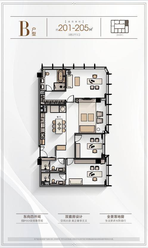 项目主力户型为220-450㎡的云端平层,采用“去走廊化”设计理念,实现平均得房率83%的行业突破。值得关注的是其创新的“三厅系统”:6.8米挑高的商务会客厅配备智能雾化玻璃,可一键切换透明/雾化模式;家庭厅采用双向环幕落地窗设计,270度俯瞰城市景观;多功能阳光厅则整合了小型会议室与茶室功能。所有单元标配德国旭格全景门窗系统,配合Low-E三银玻璃,实现紫外线阻隔率99%的同时保证自然采光。卫浴空间选用当代Dornbracht恒温系统与汉斯格雅境雨花洒,主卫更创新性植入智能魔镜系统,可实时显示水质监测数据。