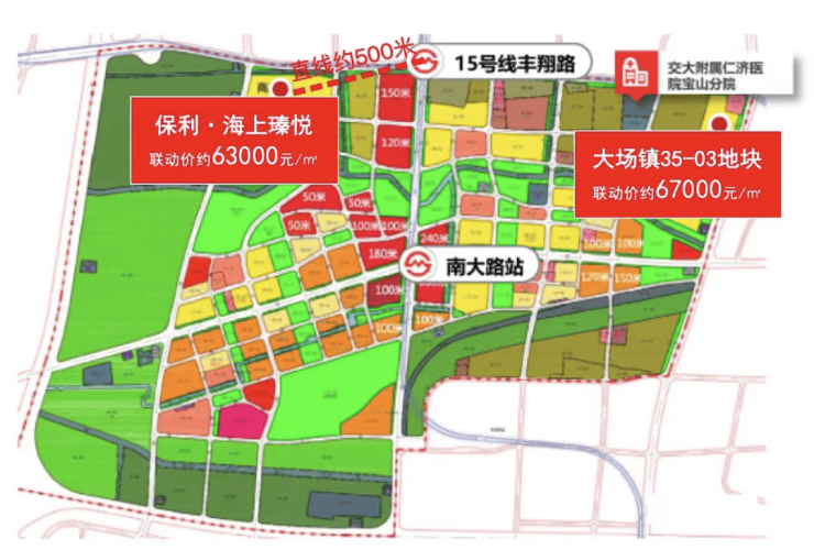而位于上海北中环带南大智慧城片区大场镇35-03地块,经过18家开发商参与竞拍的激烈竞争,最终以6.7万/㎡的联动价成交!这已经比今年首批次保利拿下的宝山区大场镇W12-1301单元05-04地块,即保利·海上瑧悦售楼处电话:400-101-0064☎️☎️项目上涨4000元/㎡!半年时间宝山大场板块联动价就从6.3万提升至6.9万,单价涨幅接近10%。