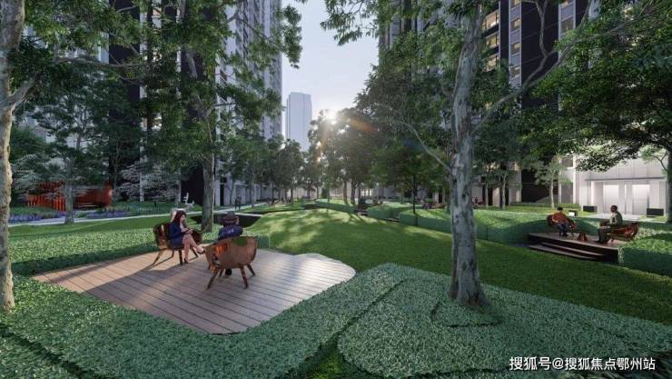 在活动大草坪上互动,其中 有专属儿童乐园,景观中还保留了一些休闲平台和户外凉亭可供家长看护孩子 ,打造住宅花园城市中的平静绿洲,塑造与大自然的互动体验。