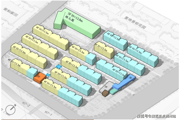该地块拟建设13幢4F叠加别墅,容积率1.29,占地面积29895.54㎡,总计容面积38565.24㎡,限高18米,共计200套。中小套型、住宅套数下限无设定,保障房配建比例为0%,装修标准5000元/㎡。