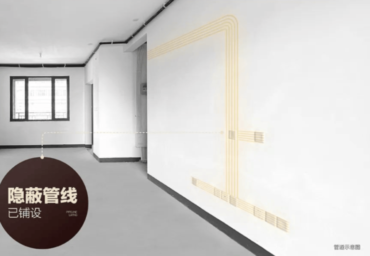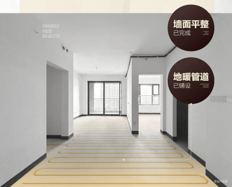 精毛坯交付!开发商贴心地铺设完成了地暖管道预埋、空调新风孔洞预留、管线铺设、赠送超大飘窗和强弱电布线以及防水处理等一系列工作。这些增加的装修内容均由开发商无偿赠送,真正做到让精英人群品质居住,无需多等!