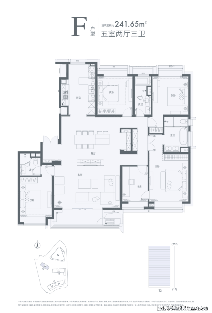 臻奢大宅的本质,是在诗意的宽敞中自由想象。建面约240㎡,高达81%的得房率,五房的功能性,是超越使用功能之上,更高层次的改善。