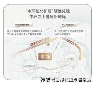 交通方面:项目紧邻长江西路地铁站(直线距离约150米),1站江杨南路,5站复旦,7站五角场。中环线北扩段明确兑现,军工路快速路25年开工,长江西路快速路列入上海市重大工程清单预备项目,快速链通城心,随着中环线北扩段的政策明确,淞南将正式进入中环时间。未来经逸仙高架,进入南北高架、内环高架、中环高架,可快速链通南北上海。