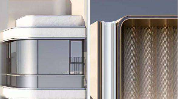 建筑层间铝板线条处,选取比一般工艺成本更贵,成品率更低的【弯弧铝板】演绎,此外,为呈现一座历经时间洗礼的作品,楼体铝板采用了造价比普通铝板高、防腐性好、附着力强、耐气候性强可历久弥新的辊涂工艺铝板,因为也是弧面,每一次都需单独整体开模。