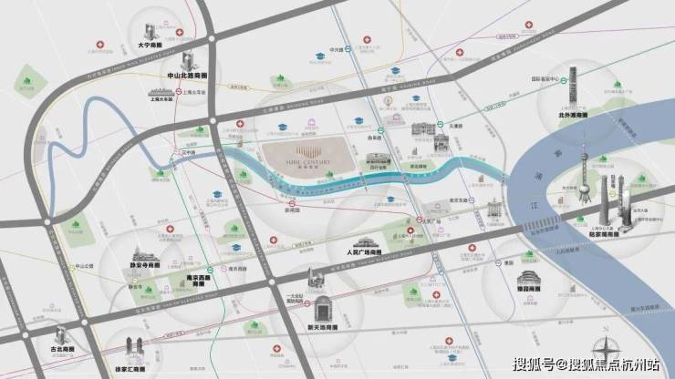 华发仁恒·苏河世纪择址静安区曲阜西路与晋元路交汇处,南接苏州河,东邻四行仓库红色地标,距南京东路与人民广场仅约900米,8/12号线曲阜路地铁站约200米即达,真正实现——“一步繁华,转身静谧”。