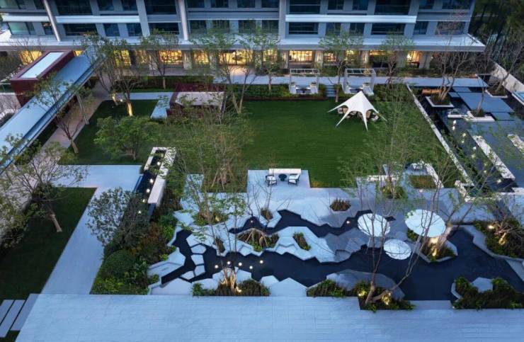 四季隐秀 示范区山水庭院、阳光草坪实景