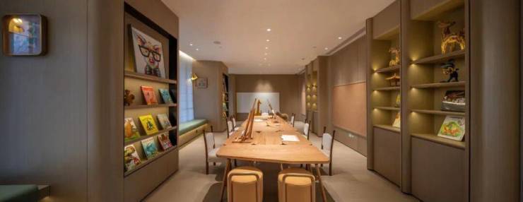 空间规划上,众多细节都充分考虑到孩子们成长的不同阶段:6至12岁儿童可以在宽敞的区域内进行读书、绘画和手工制作等寓教于乐的活动;而3至6岁的小朋友则有专门的小空间,用于搭积木和观看动画片等娱乐活动。在材料选择上,则特别选用了防磕碰的软包结构和柔软的地毯,最大程度地保护孩子们的每一次探索。
