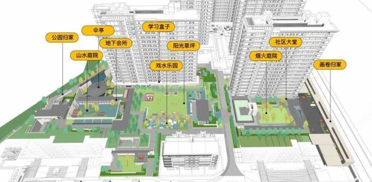 项目通过近6万平方米的城市公园,形成了与城市的自然过渡区,打造了城市(公共空间)--公园(过渡空间)--社区(私域空间)的和谐关系。城市公园作为家庭生活的外延,为居民提供了更加广阔的休闲空间,不仅是亲近自然的好去处,也是锻炼、聚会和社交的理想场所。