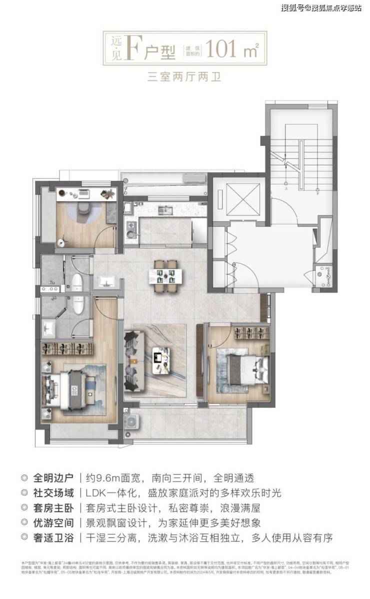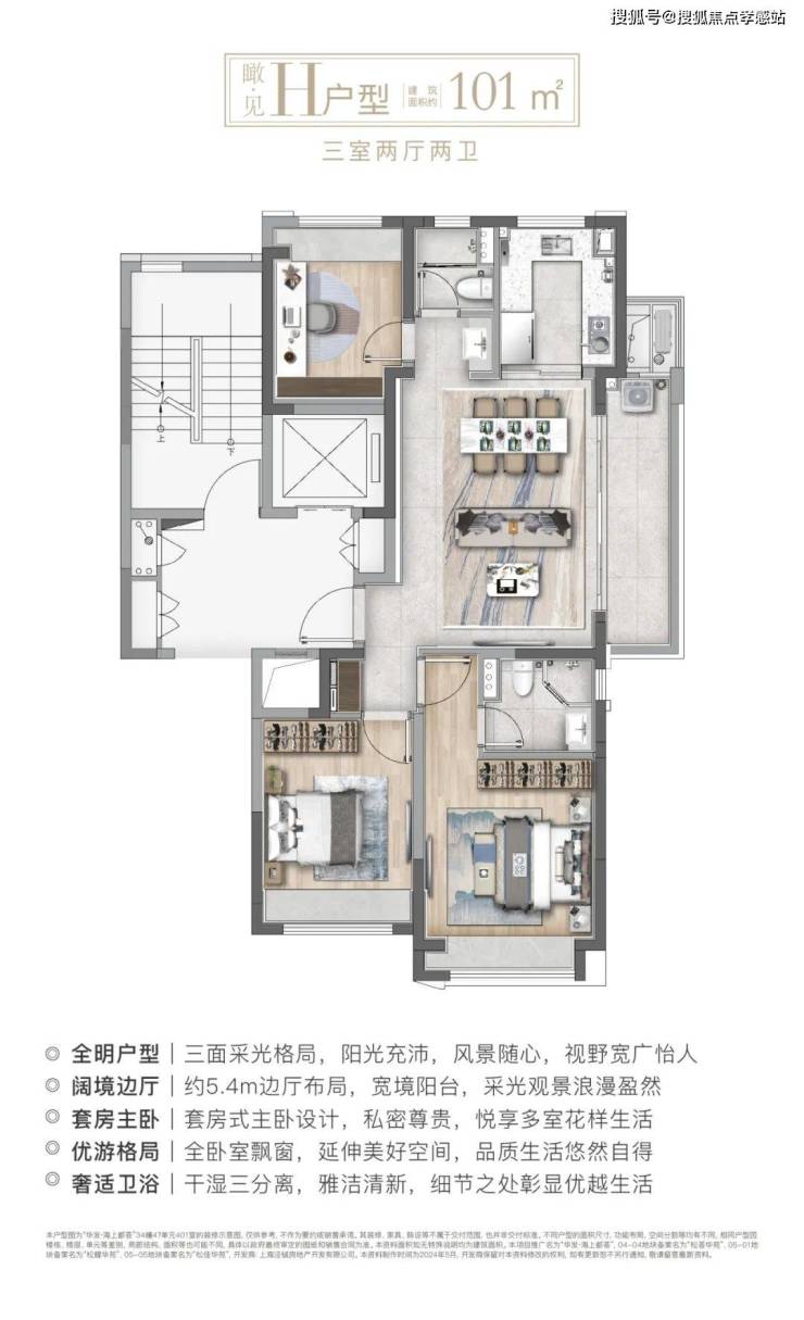 建面约101㎡H户型:三面采光,全能景观王炸边厅户型!