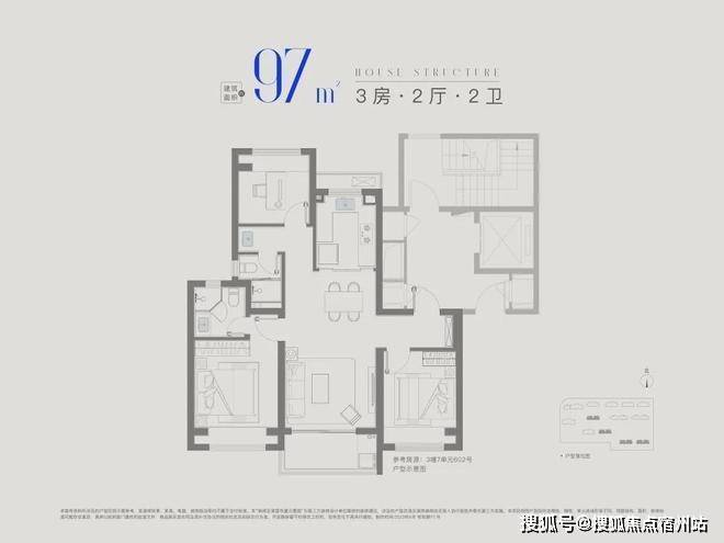 建面约97㎡3房2卫,升级版大3房,入户玄关+主卧套房设计,招商象屿·星耀翠湾售楼处电话☎:400-8787-740✅✅整体私密性更强,空间更为宽敞。