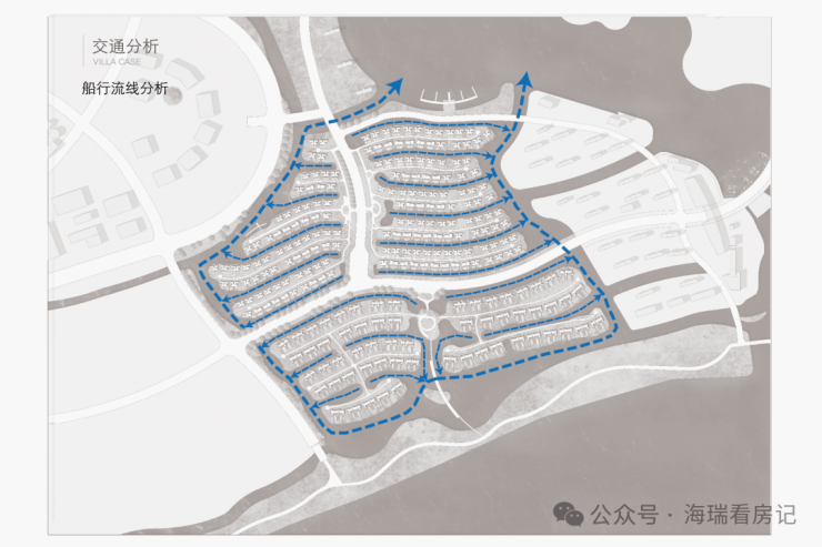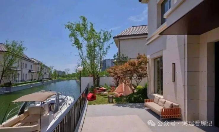 每一排别墅前都有一条渠道,引入水系,可!以!停!游!艇!