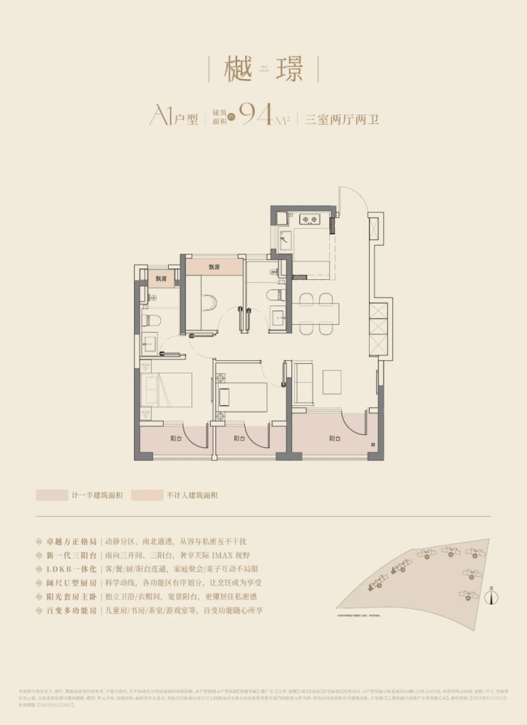 在这里,高层建面约94㎡户型做到了惊人的三阳台,对比同板块内以前的标杆小区,同面积段户型只做了1个阳台。不仅数量发生质的变化,实得面积也大大增加。