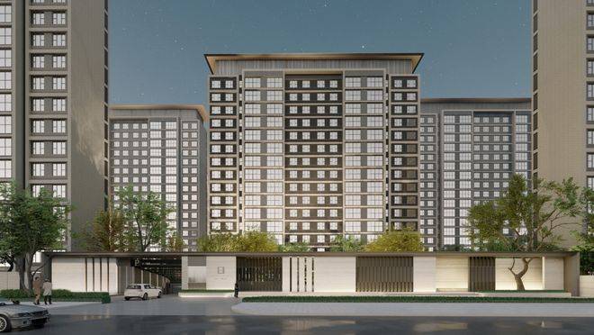主题风格:外立面采用经典时尚现代主义风格,通过温和的色彩搭配、简练的横向线条、黄金比例的立面比例、极简抽象的建筑符号、建筑顶部的飘板,呈现一个现代风格和艺术气质结合的高品质社区。