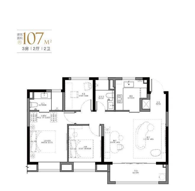 产品:103㎡、107㎡的三房两厅两卫及123㎡、129㎡的四房两厅两卫