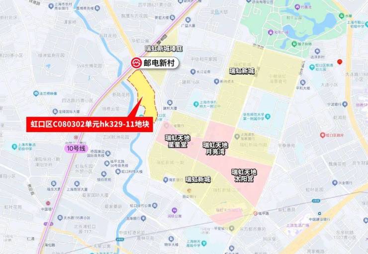 地块除了紧邻瑞虹的商业,南侧是新宏星小学,西南侧是招商云玺。