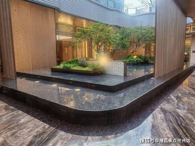 外滩源著 复兴里售楼处预约电话:400-9966-940☎️☎️☑️☑️挑高金属雨棚采用极细边,中间凿壁采用透光奢石,搭配极具现代主义的雕塑彰显小区档次,背景墙面采用维多利亚黑大理石,奢华且低调。外滩源著 复兴里售楼处预约电话:400-9966-940☎️☎️☑️☑️