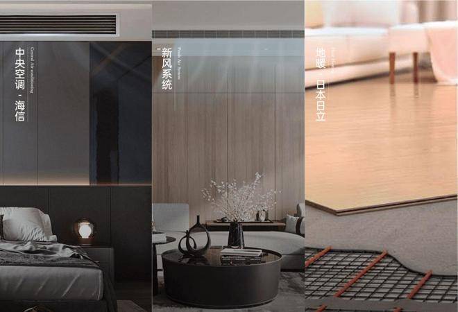 标配中央空调、新风系统、地暖三大件(日立或同等品牌)