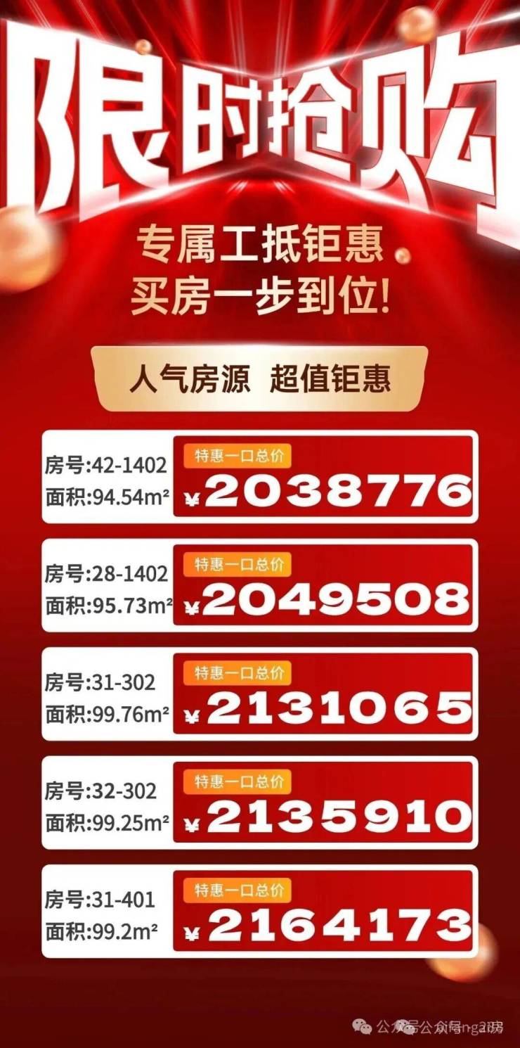 大名城映雨江南项目一房一价表: