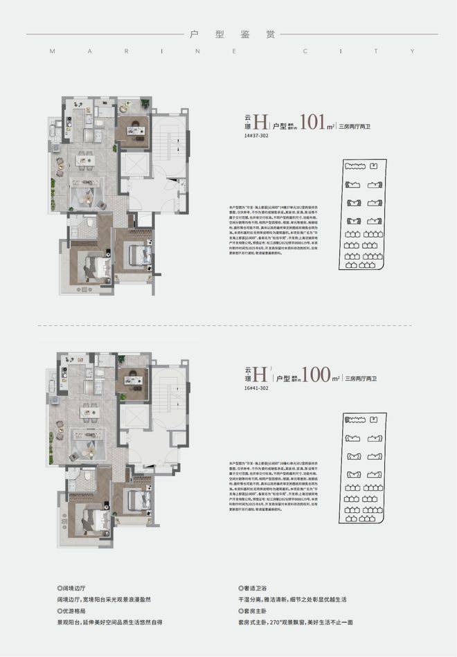 H户型:把“江景+中轴+墅区”这三种景观资源一网打尽!