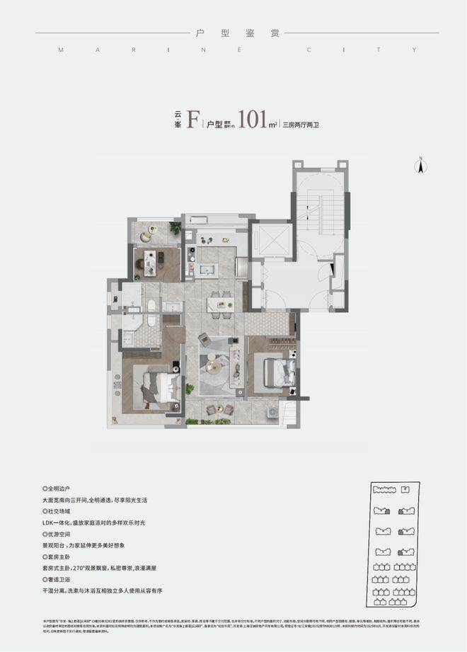 项目建面约101㎡的南厅边套户型,阳台面积接近12㎡,还有超过8㎡的飘窗,再加上设备平台等面积,房间的实得率比起松江目前在售待售的所有项目都要高!这不是绝版是什么?