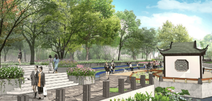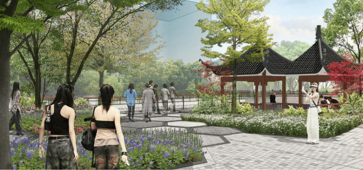 值得一提,项目南侧紧邻约1公里走马塘滨水黄金轴线,这里不只是一条滨水步道,更串联起江湾源、奎星阁、蟠曲舫等文化空间;而正在推进的走马塘生态驳岸改造,正让滨水生活重焕自然活力与人文温度。