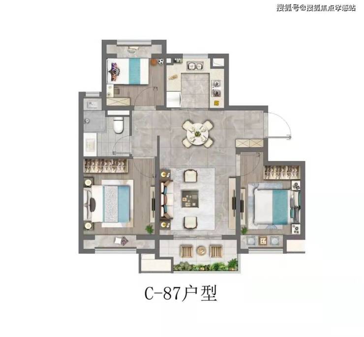 87平米3房2厅1卫️(精装+毛坯)